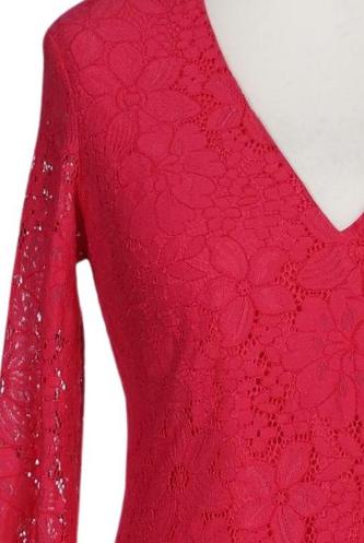 | Détails | Dentelles, Manches trois-quarts, Encolure en V, Fermeture éclair/boutons arrière, Fleuri |