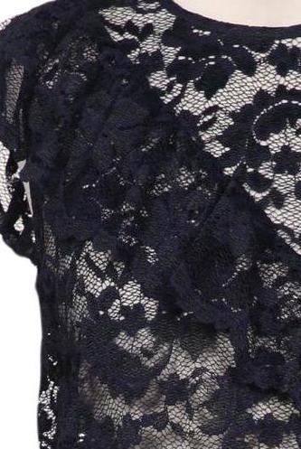 | Détails | Dentelles, Manches courtes, Col rond, Sans fermeture, Fleuri |