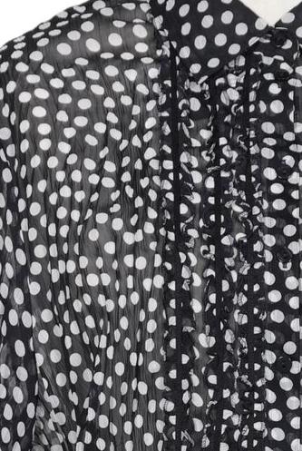 | Détails | volants, Chiffon, Manches courtes, Patte de boutonnage avant, À pois |