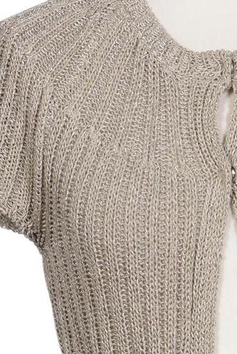 | Détails | Lacets, Grosse maille, Manches courtes, Col rond, Patte de boutonnage avant, Uni |