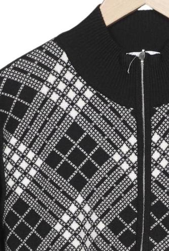 | Détails | Grosse maille, Manches longues, Col rond, Fermeture éclair avant |
