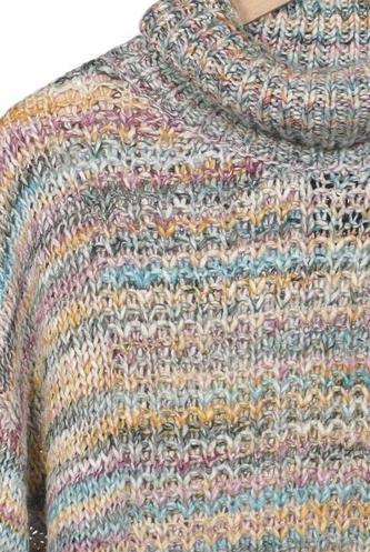 | Détails | Grosse maille, Manches longues, Col roulé, Rayures |