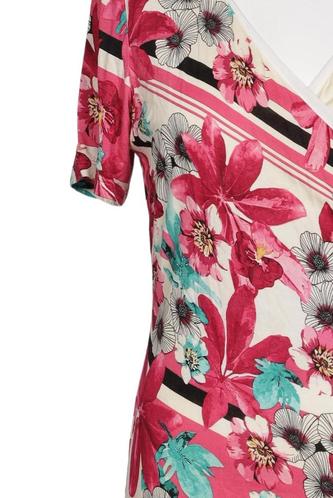 | Détails | Jersey, Manches courtes, Encolure en V, Fleuri, Rayures |