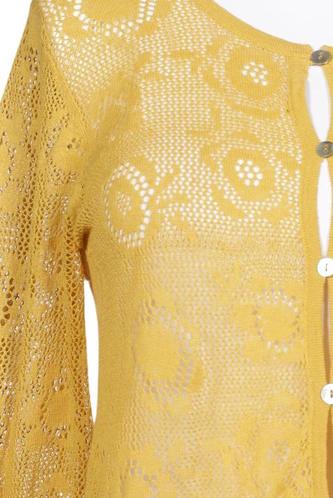 | Détails | Grosse maille, Manches longues, Col rond, Patte de boutonnage avant, Fleuri |