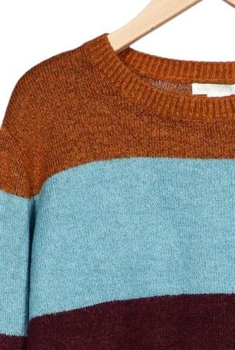 | Détails | Grosse maille, Manches longues, Col rond, Rayures |