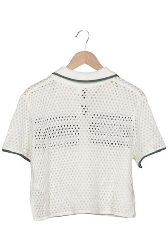 | Détails | Grosse maille, Manches courtes, Col rond, Patte de boutonnage avant, Rayures |