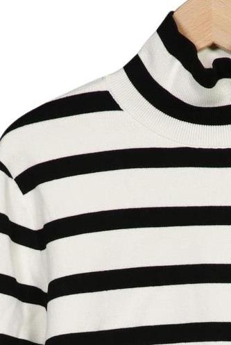 | Détails | Grosse maille, Manches longues, Col roulé, Rayures |