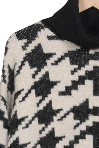 | Détails | Grosse maille, Manches longues, Col roulé, Pied-de-poule |