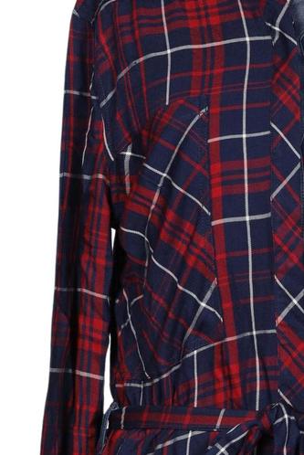 | Détails | Flanelle, Manches longues, Ceinture, Col rond, Patte de boutonnage avant, Carreaux |