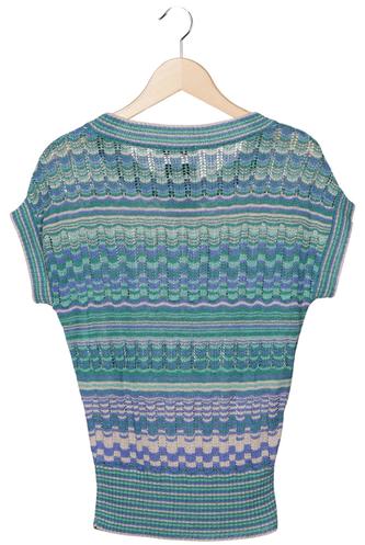 | Détails | Grosse maille, Manches courtes, Encolure en V, Rayures |