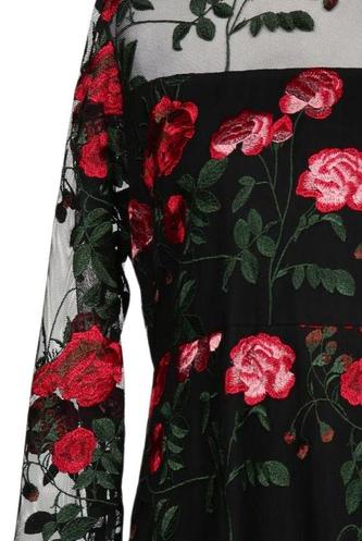 | Détails | Tulle, Manches trois-quarts, Col rond, Fermeture éclair/boutons arrière, Fleuri |