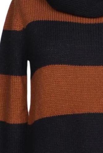 | Détails | Grosse maille, Manches longues, Col roulé, Rayures |