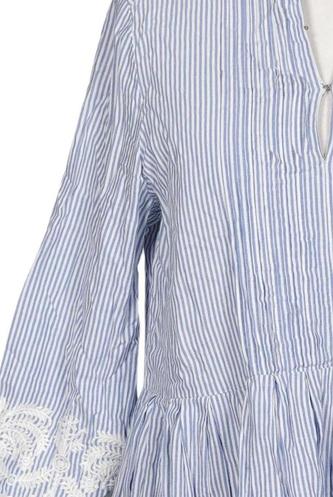 | Détails | Broderie, Dentelles, Broderie anglaise, Manches trois-quarts, Encolure en V, Rayures |