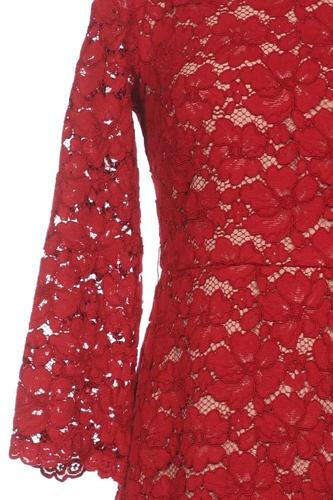 | Détails | Dentelles, Manches trois-quarts, Encolure en V, Fermeture éclair/boutons arrière, Fleuri |