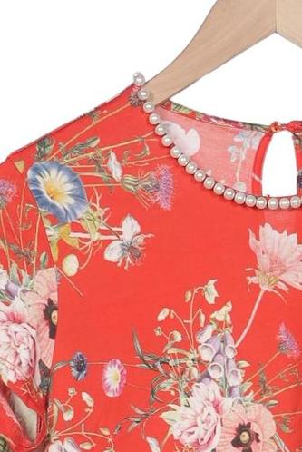 | Détails | Jersey, Col rond, Fleuri |
