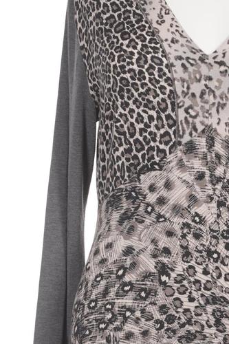 | Détails | Jersey, volants, Manches longues, Encolure en V, Léopard |