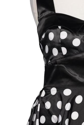| Détails | Satin, Sans manches, Encolure en V, Fermeture éclair/boutons arrière, À pois |