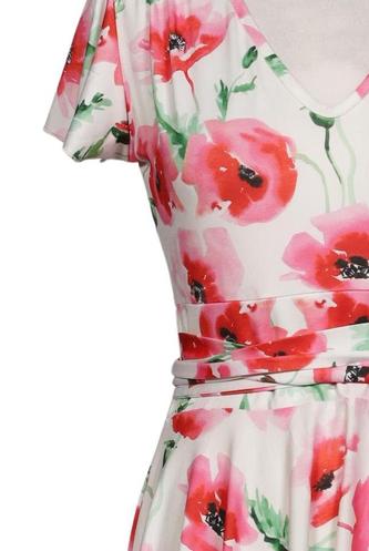 | Détails | Jersey, Manches courtes, Ceinture, Encolure en V, Fleuri |