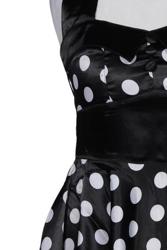 | Détails | Satin, Sans manches, Ceinture, Encolure en V, Fermeture éclair/boutons arrière, À pois |
