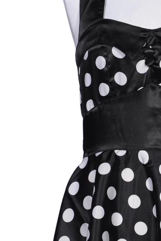 | Détails | Satin, Sans manches, Ceinture, Encolure en V, Fermeture éclair/boutons arrière, À pois |