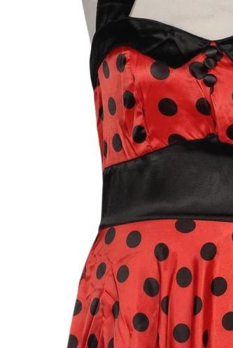 | Détails | Satin, Sans manches, Ceinture, Encolure en V, Fermeture éclair/boutons arrière, À pois |