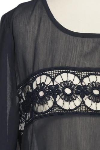 | Détails | Découpes, Dentelles, Chiffon, Broderie anglaise, Manches courtes, Col rond, Sans fermeture |