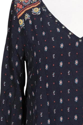 | Détails | Jersey, Broderie, Manches trois-quarts, Encolure en V, Sans fermeture, Ethnique |