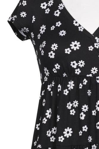 | Détails | Jersey, volants, Manches courtes, Encolure en V, Fleuri |