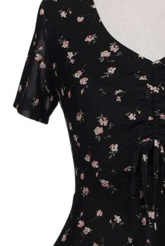| Détails | Chiffon, Manches courtes, Encolure en V, Élastique/cordon de serrage, Fleuri |