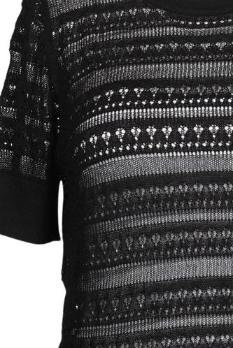 | Détails | Grosse maille, Manches courtes, Col rond, Rayures |
