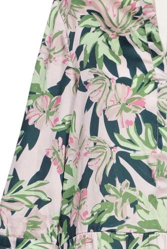 | Détails | Satin, Manches trois-quarts, Encolure en V, Fleuri |