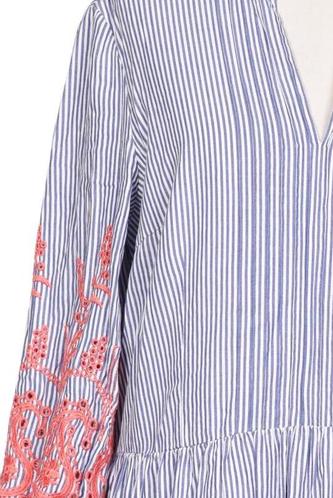 | Détails | Jersey, Broderie, Manches trois-quarts, Encolure en V, Fleuri, Rayures |