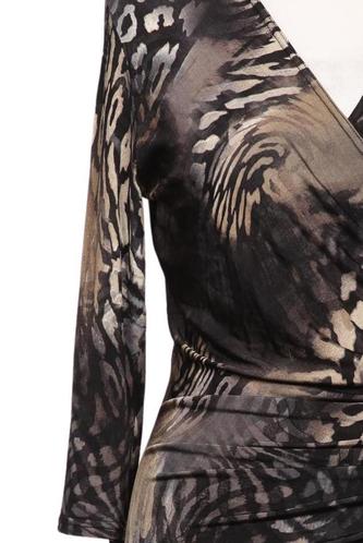 | Détails | Jersey, Manches trois-quarts, Cache-cœur, Encolure en V, Léopard |