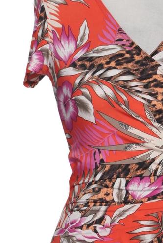 | Détails | Jersey, Manches courtes, Encolure en V, Fleuri, Léopard |