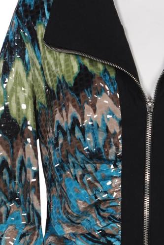 | Détails | Grosse maille, Manches trois-quarts, Encolure en V, Fermeture éclair avant, Imprimé à motifs |
