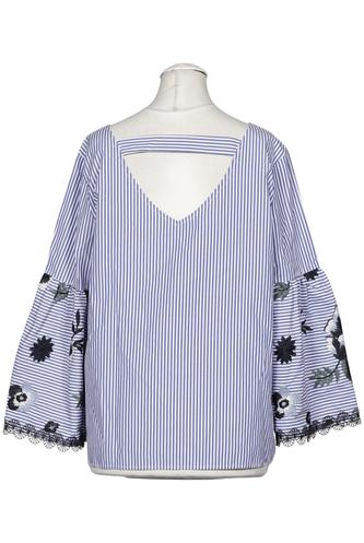 | Détails | Jersey, Broderie, Découpes, Dentelles, Manches longues, Encolure en V, Sans fermeture, Rayures |