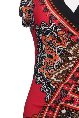 | Détails | Jersey, Manches courtes, Encolure en V, Ethnique |