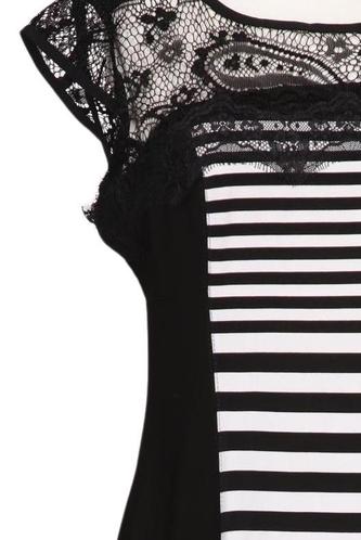| Détails | Jersey, Dentelles, Manches courtes, Encolure en V, Fermeture éclair/boutons arrière, Rayures |