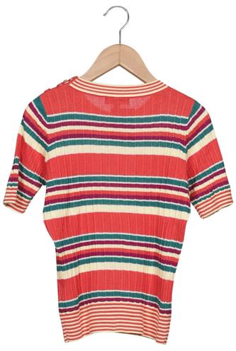 | Détails | Grosse maille, Manches courtes, Col rond, Rayures |