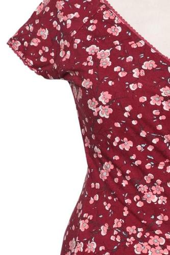 | Détails | Jersey, Manches courtes, Encolure en V, Fleuri |
