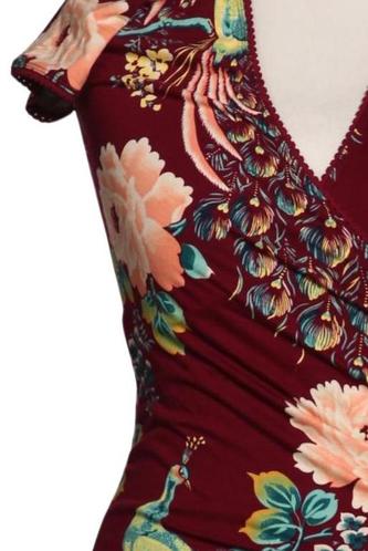 | Détails | Jersey, Manches courtes, Cache-cœur, Encolure en V, Fleuri |