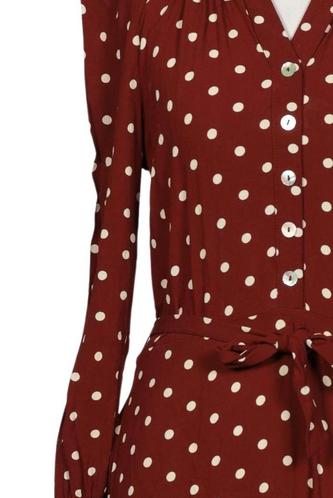 | Détails | Manches longues, Ceinture, Encolure en V, Patte de boutonnage avant, À pois |