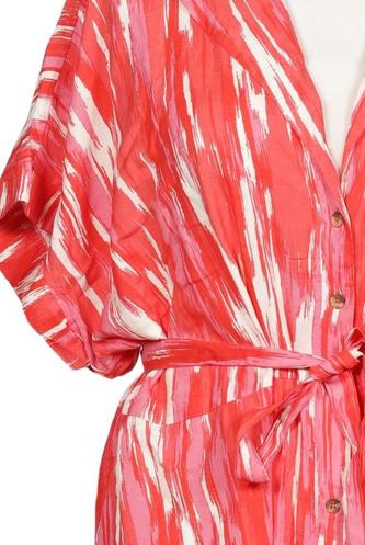 | Détails | Manches courtes, Ceinture, Encolure en V, Patte de boutonnage avant, Imprimé à motifs |