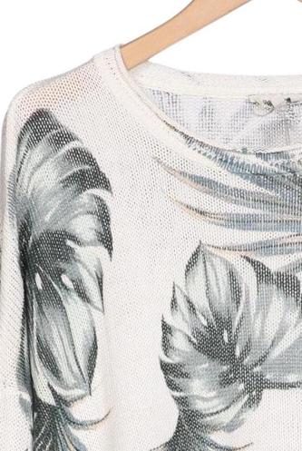 | Détails | Grosse maille, Manches longues, Col rond, Fleuri |