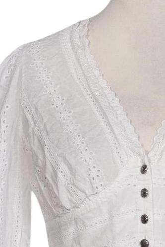 | Détails | Dentelles, Broderie anglaise, Manches longues, Encolure en V, Patte de boutonnage avant |