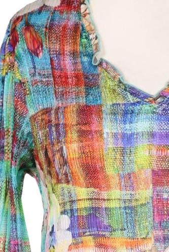 | Détails | volants, Chiffon, Manches trois-quarts, Encolure en V, Sans fermeture, Fleuri, Carreaux |