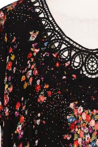| Détails | Jersey, Dentelles, volants, Broderie anglaise, Manches courtes, Encolure en V, Sans fermeture, Fleuri |