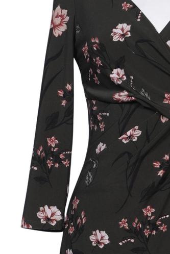 | Détails | Jersey, Manches trois-quarts, Cache-cœur, Encolure en V, Fleuri |