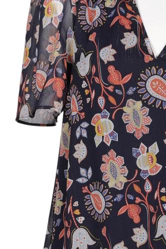 | Détails | volants, Chiffon, Manches courtes, Encolure en V, Fleuri |