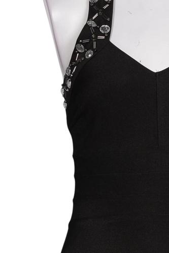 | Détails | Strass, Jersey, Sans manches, Encolure en V, Fermeture éclair/boutons arrière, Uni |